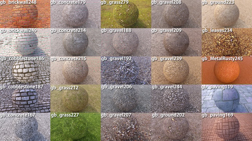 Currently the library contains over 90 high quality photogrammetry based PBR materials with the market value over 400USD and is growing.